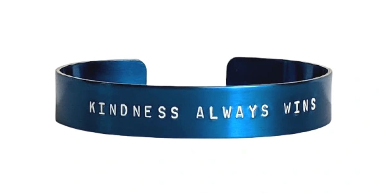 Kindness cuffs are handmade aluminum cuff bracelets bearing participant submitted messages of kindness and encouragement - sent out anonymously!